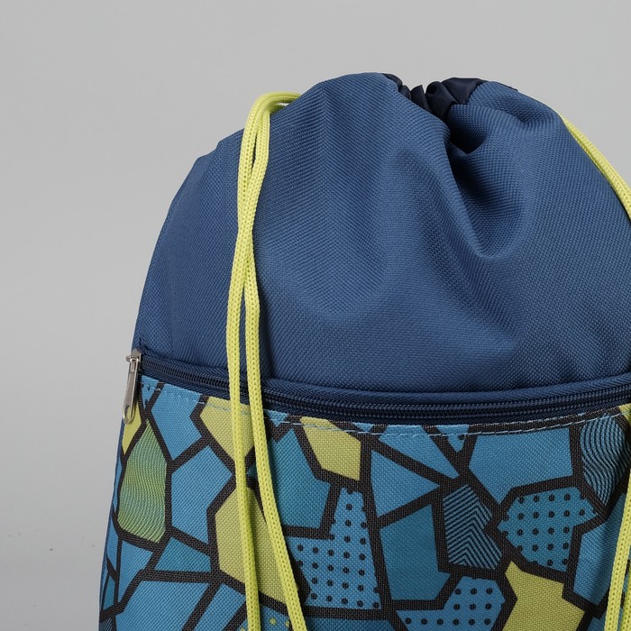 Сумка-мешок для обуви, наружный карман на молнии, принт синий/салатовый ромб
