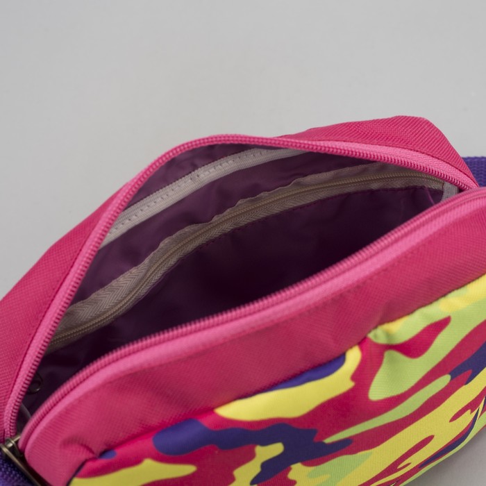 Сумка молодёжная на молнии "Милитари", 2 отдела, регулируемый ремень, фиолетовый/розовый