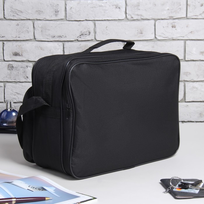 Сумка мужская на молнии "Оксфорд", 2 отдела, 1 наружный карман, длинный ремень, чёрная