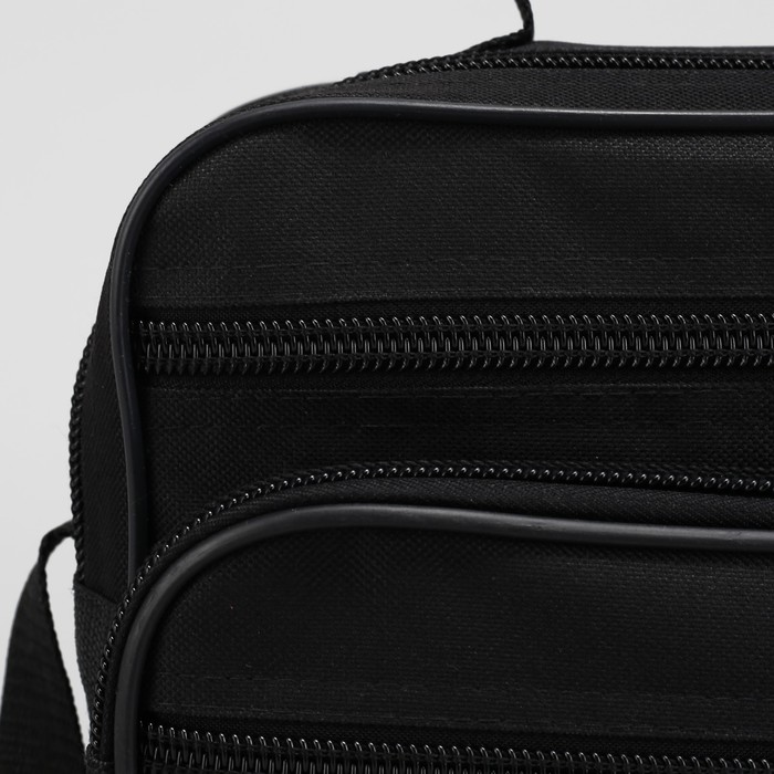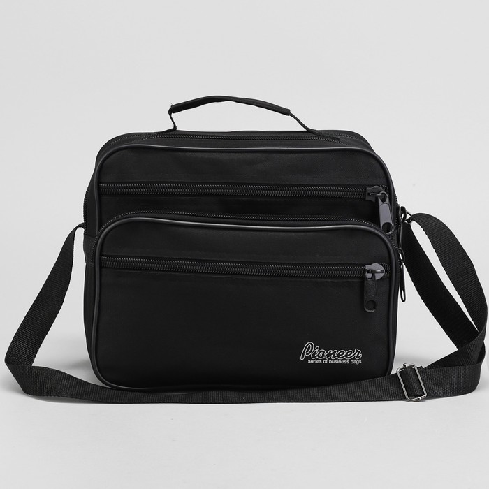 Сумка мужская на молнии "Пионер", 2 отдела, 2 наружных кармана, длинный ремень, чёрная