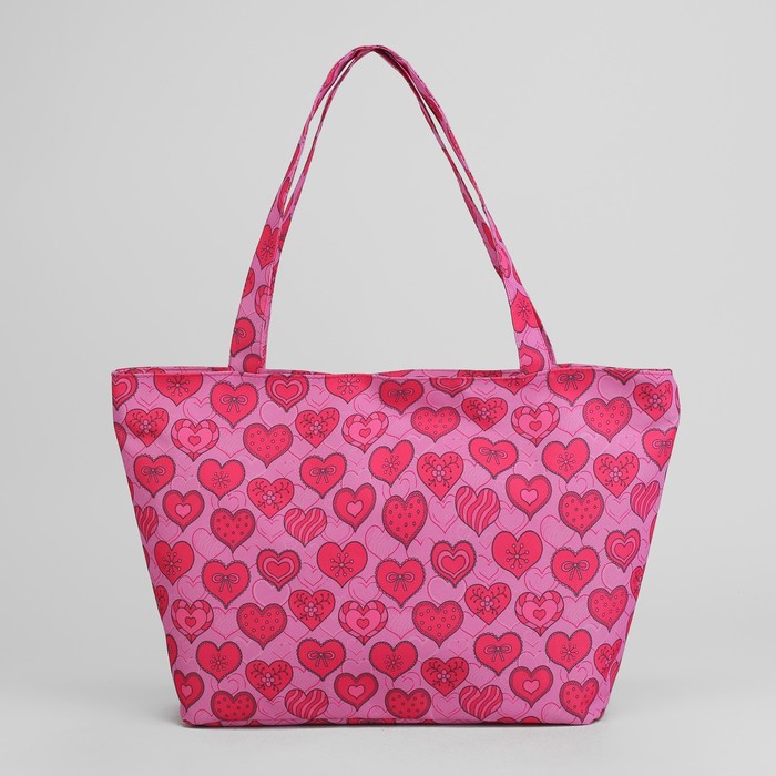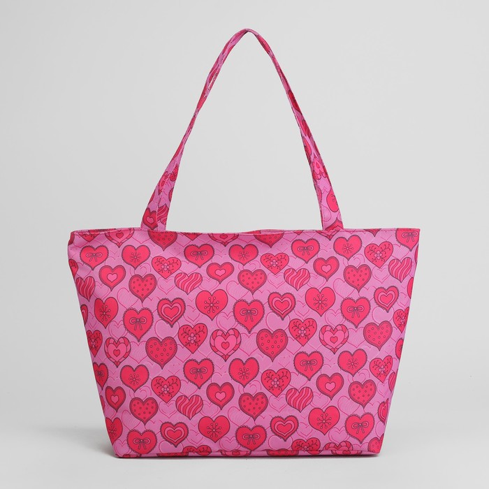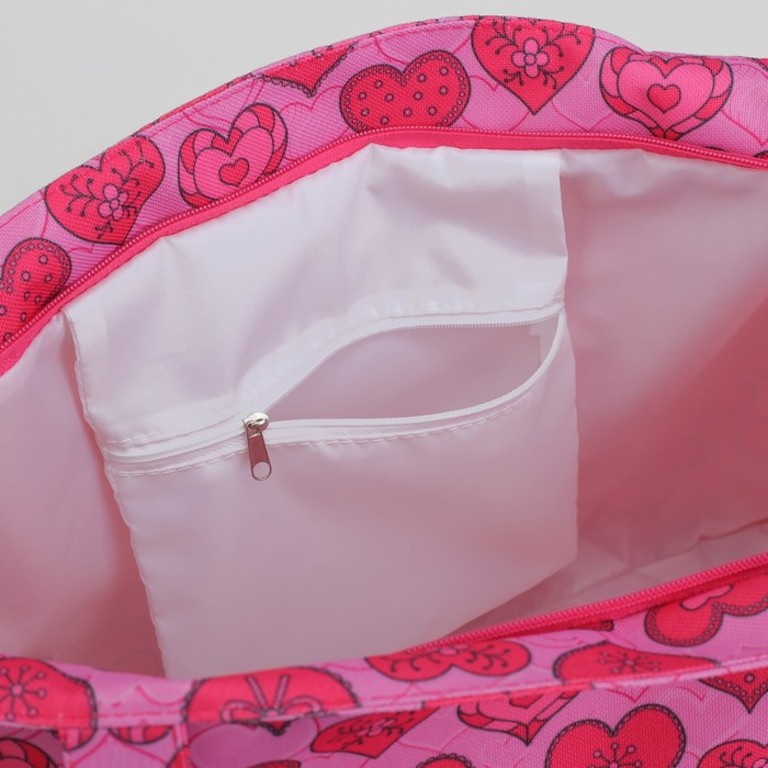 Сумка пляжная 30*12*35, отдел на молнии, "Сердца розовые"