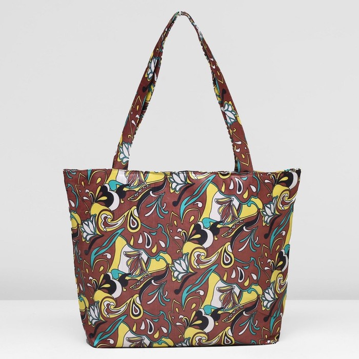 Сумка пляжная на молнии "Узор", 1 отдел, подклад, цвет коричневый