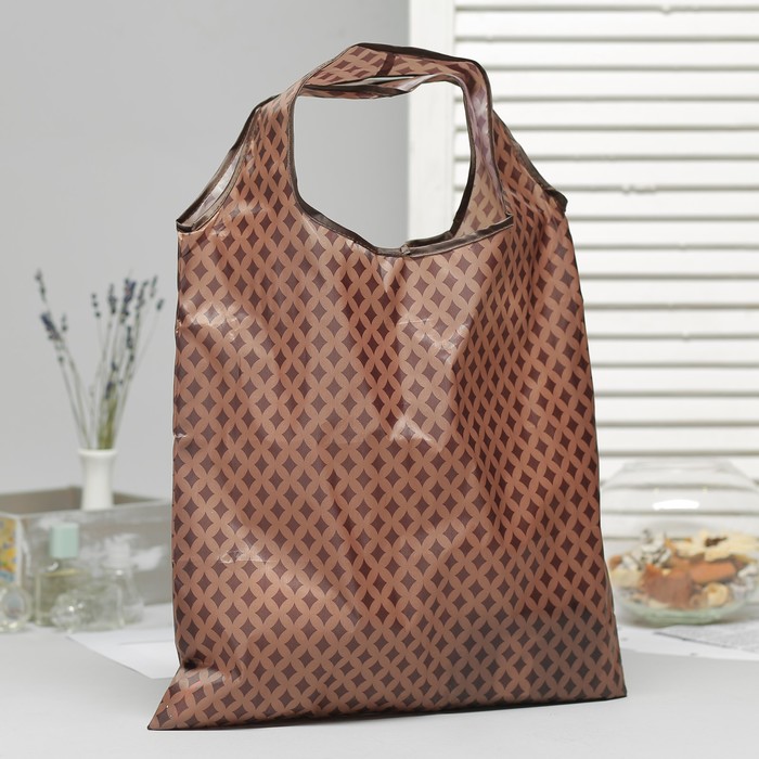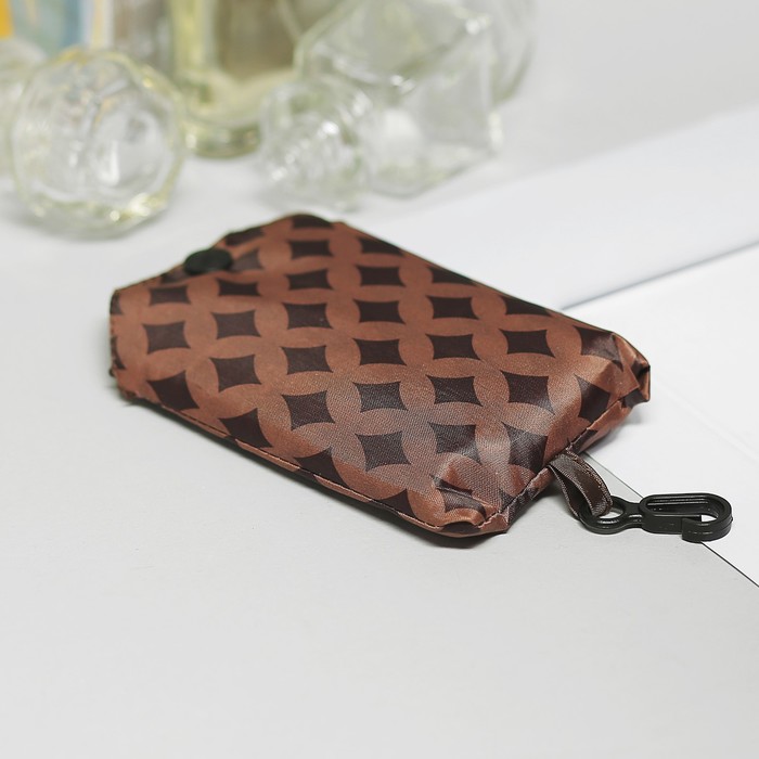 Сумка складная «Ромбы», отдел на кнопке, с карабином, цвет коричневый