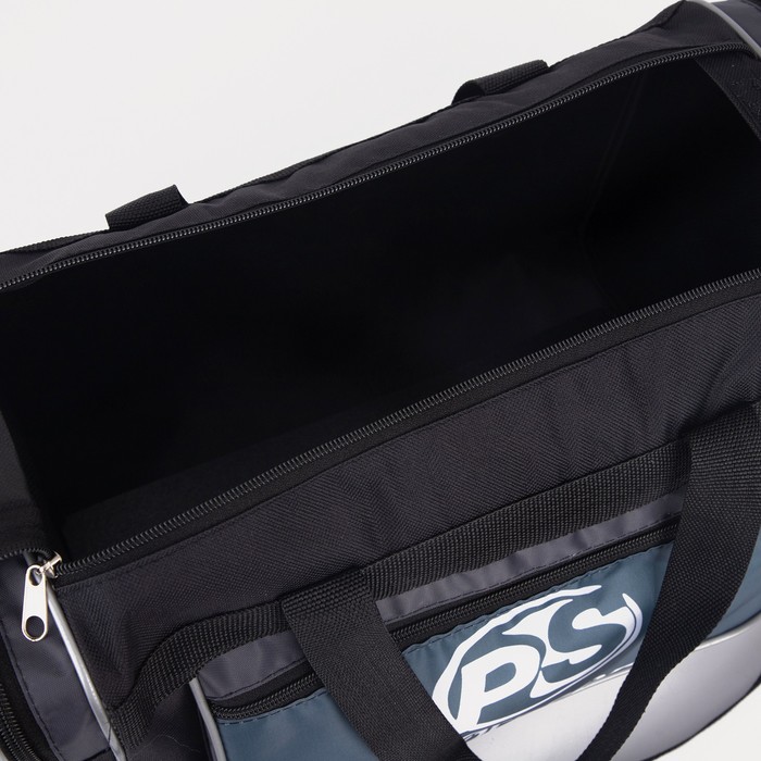 Сумка спорт Д1, 41*19*24, отдел на молнии, 3 н/кармана, длинн ремень, черный/серый