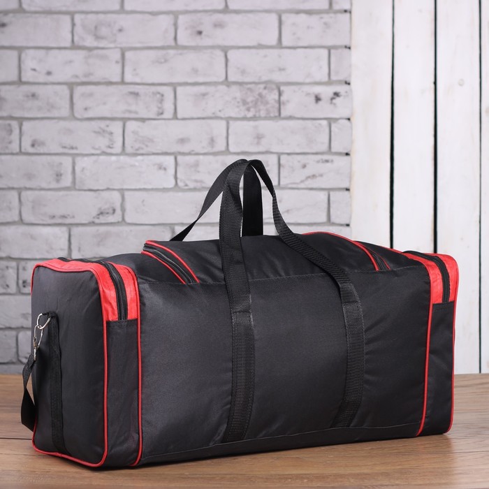 Сумка спорт Sport, 60*25*28, отд на молнии, 3 н/кармана, длин ремень, черный/красный
