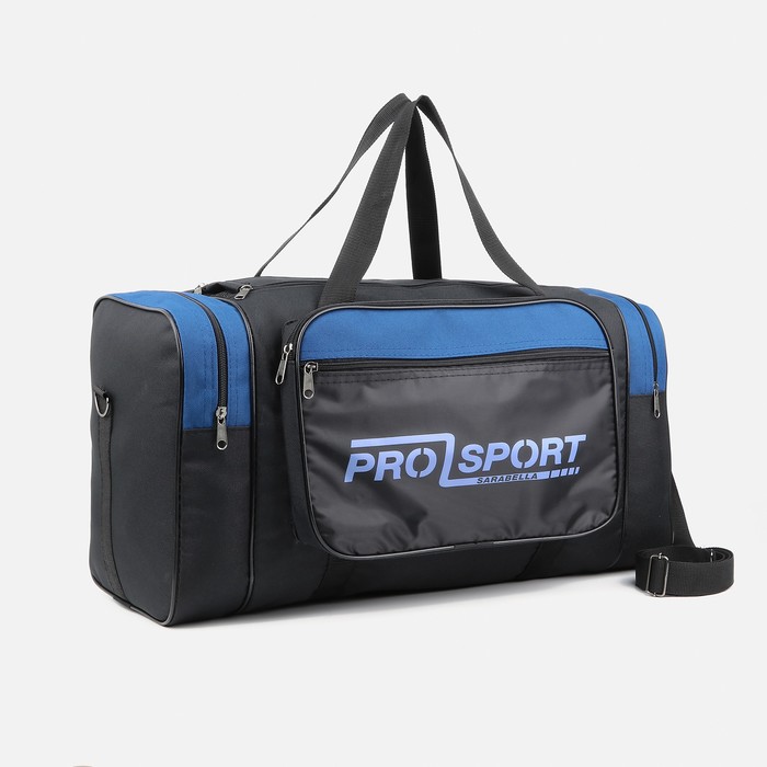 Сумка спортивная, 1 отдел на молнии, 3 наружных кармана, цвет чёрный/синий