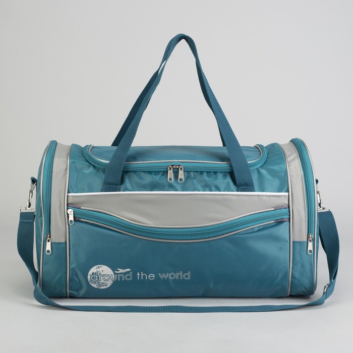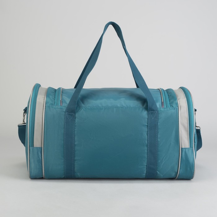 Сумка спортивная на молнии, 1 отдел, 3 наружных кармана, длинный ремень, цвет серый/бирюзовый