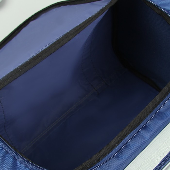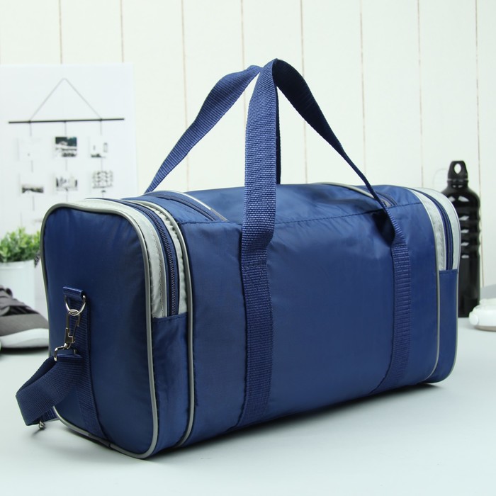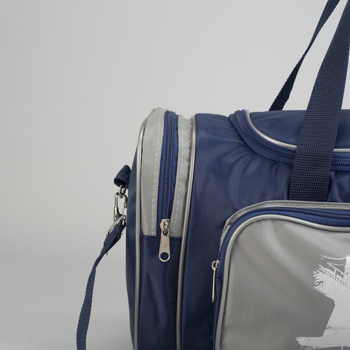 Сумка спортивная на молнии, 1 отдел, 3 наружных кармана, длинный ремень, цвет синий/серый