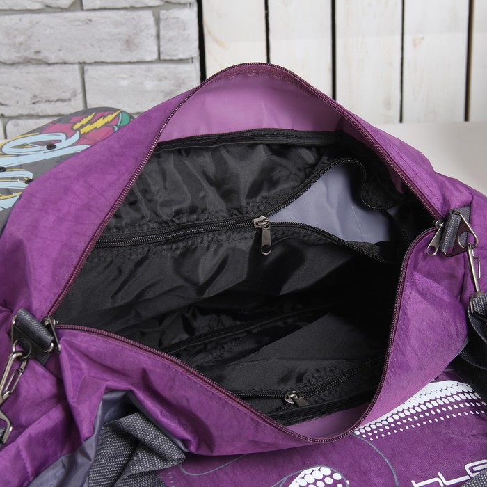 Сумка спортивная на молнии "Атлет", 1 отдел, 1 наружный карман, цвет серый/сиреневый