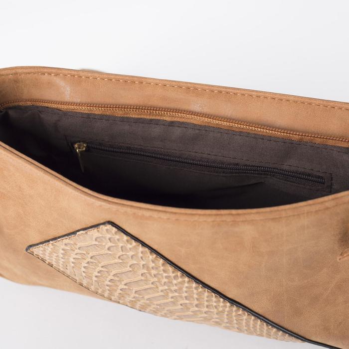 Всё ещё ищете сумку, подходящую для ежедневной носки? Обратите внимание на аксессуар с минимумом фурнитуры. Он станет вашим незаменимым спутником в течение дня благодаря своей компактности и вместительности. Вы без труда сложите в сумочку кошелёк, предметы личной гигиены, ключи и телефон. А оригинальное сочетание двух текстур и рисунка, напоминающего кожу рептилии, добавит в ваш образ пикантную нотку.
