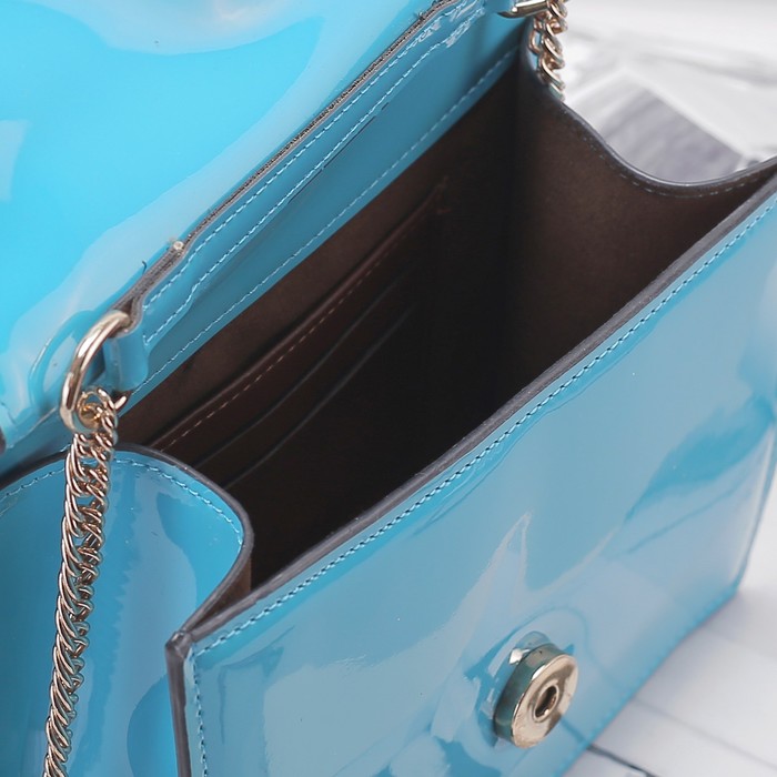 Сумка женская, 1 отдел на магните, длинная цепь, цвет бирюзовый