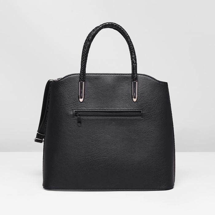 Сумка женская, 1 отдел на молнии, 3 наружных кармана, стёжка/гладкий чёрный