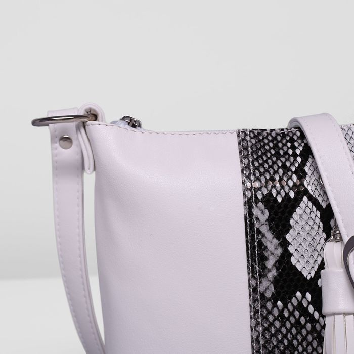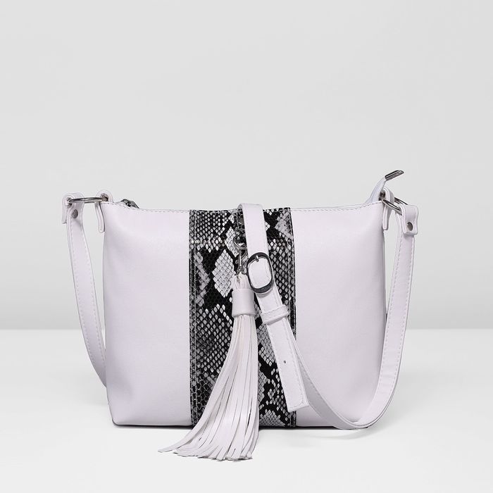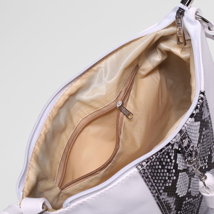 Сумка женская, 1 отдел на молнии, наружный карман, цвет белый/серый