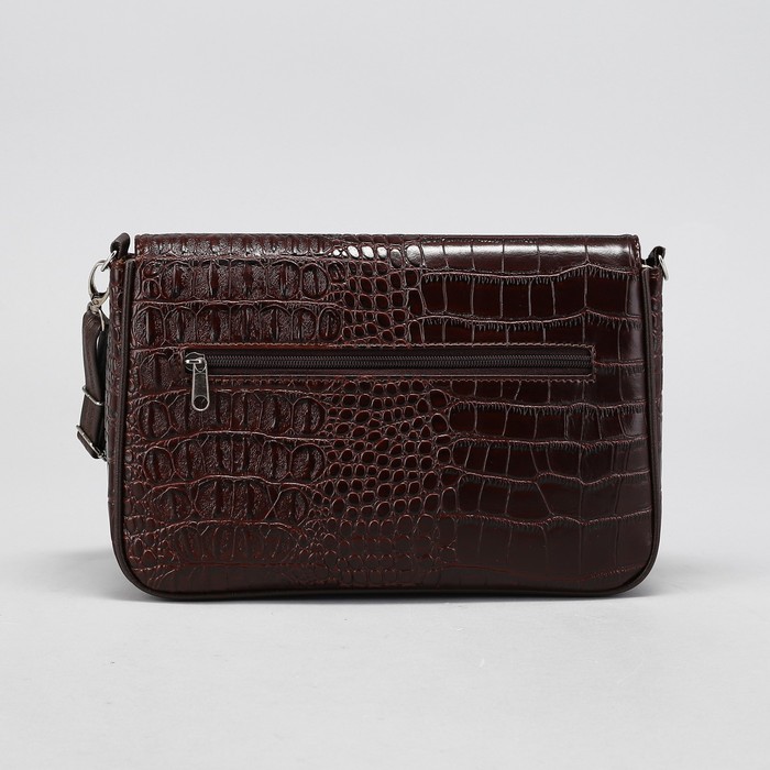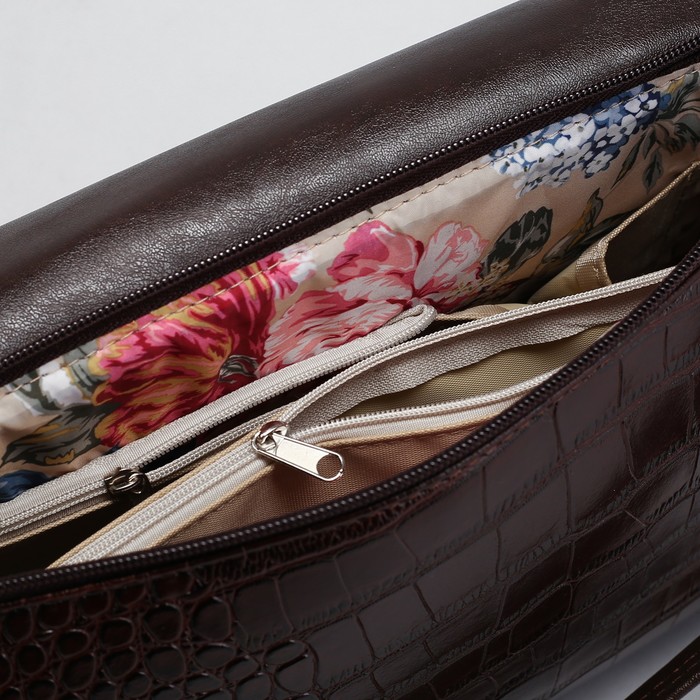 Сумка женская, 1 отдел на молнии, наружный карман, длинный ремень, крокодил коричневый