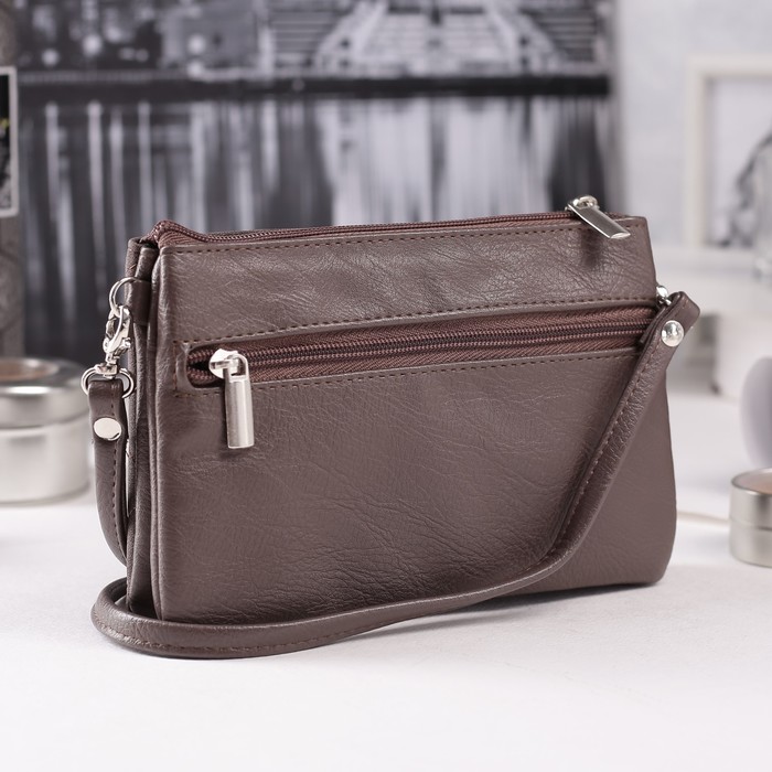 Сумка женская, 1 отдел на молнии, наружный карман, длинный ремень, стёжка, цвет коричневый