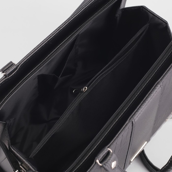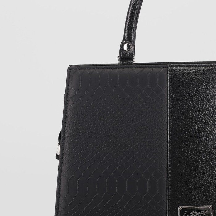 Сумка женская, 1 отдел на молнии, наружный карман, длинный ремень, змея, цвет чёрный