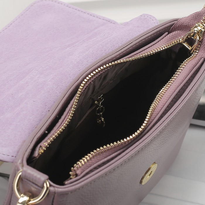 Сумка женская, 1 отдел с перегородкой, 2 наружных кармана, длинный ремень, цвет сиреневый