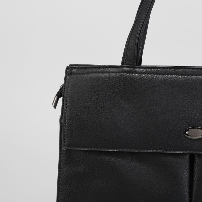 Сумка женская, 1 отдел с перегородкой, 3 наружных кармана, длинный ремень, цвет чёрный