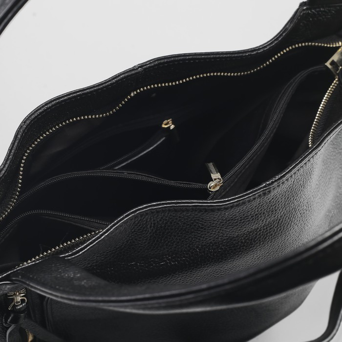 Сумка женская, 1 отдел с перегородкой, 3 наружных кармана, длинный ремень, цвет чёрный
