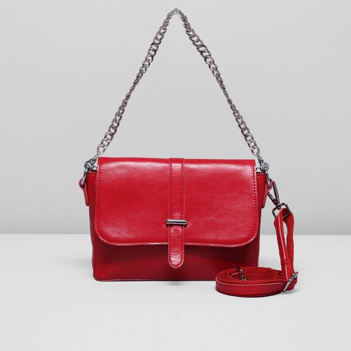 Сумка женская, 1 отдел с перегородкой, длинный ремень, цвет красный