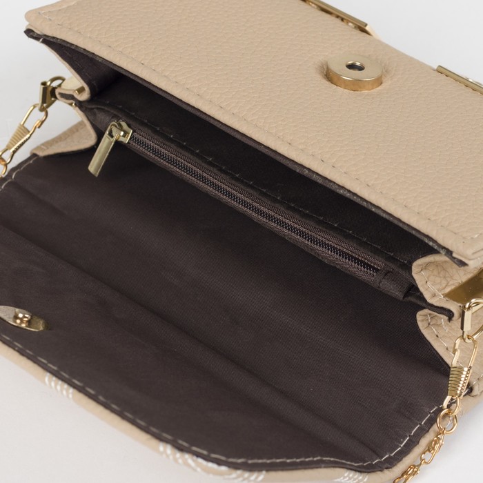 Сумка женская, 1 отдел с перегородкой на магните, длинная цепь, цвет бежевый