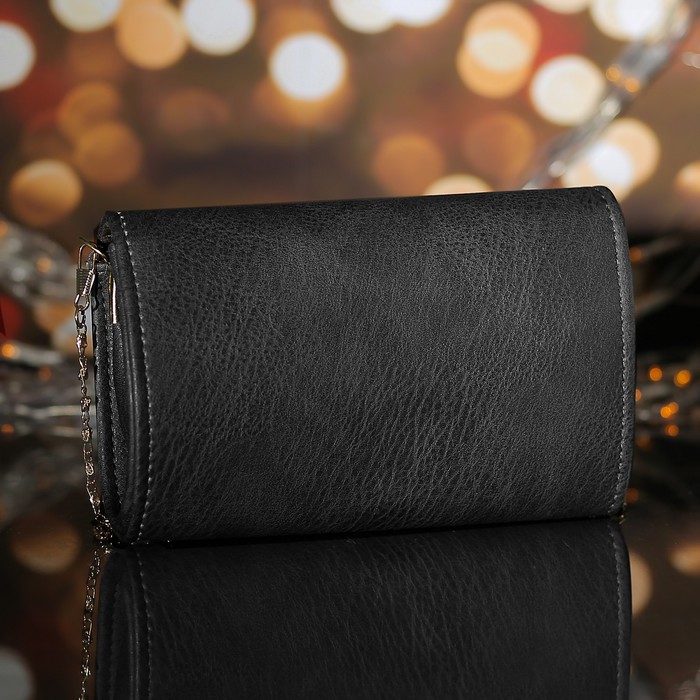 Сумка женская, 1 отдел с перегородкой на магните, длинная цепь, цвет чёрный
