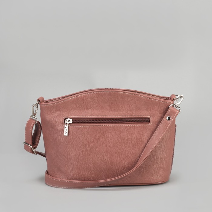 Сумка женская, 1 отдел с перегородкой на молнии, 3 наружных кармана, длинный ремень, цвет пудра