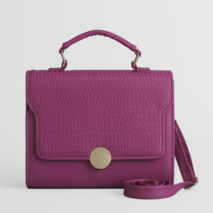 Сумка женская, 1 отдел с перегородкой на молнии, длинный ремень, ручка, цвет фиолетовый
