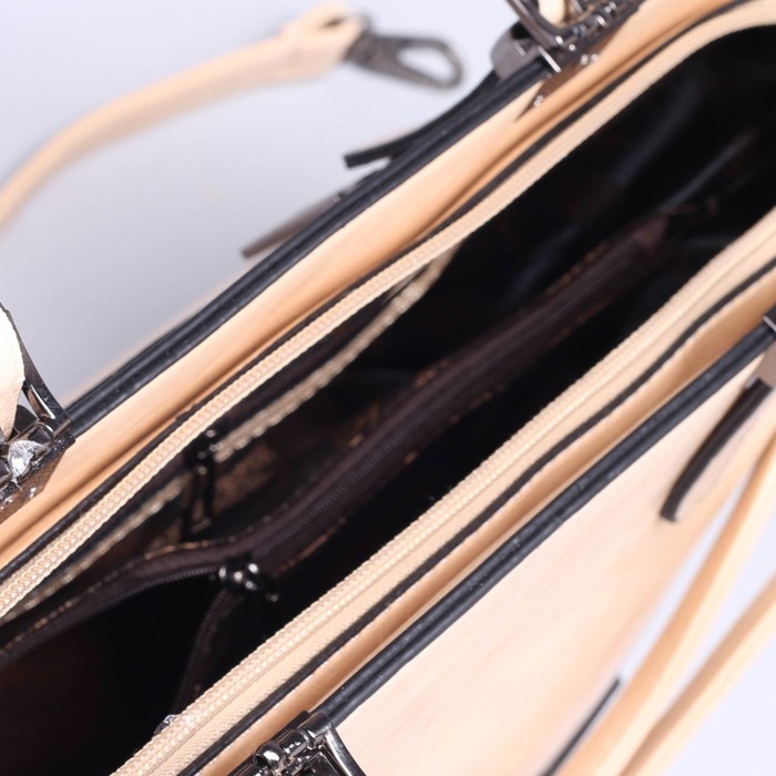 Сумка женская, 1 отдел с перегородкой, наружный карман, длинный ремень, цвет бежевый