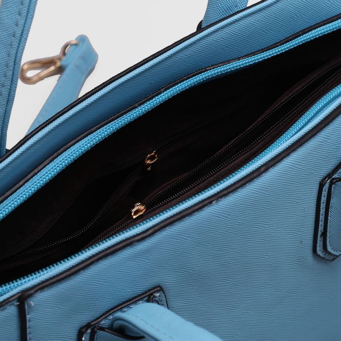 Сумка женская, 1 отдел с перегородкой, наружный карман, длинный ремень, цвет голубой