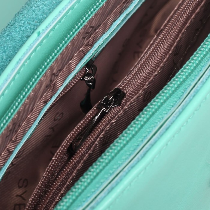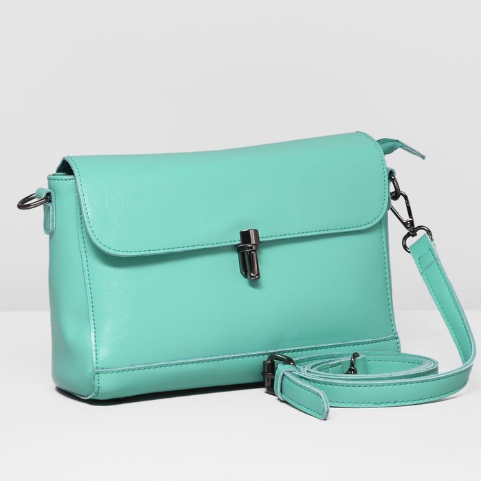 Сумка женская, 1 отдел с перегородкой, наружный карман, длинный ремень, цвет мятный
