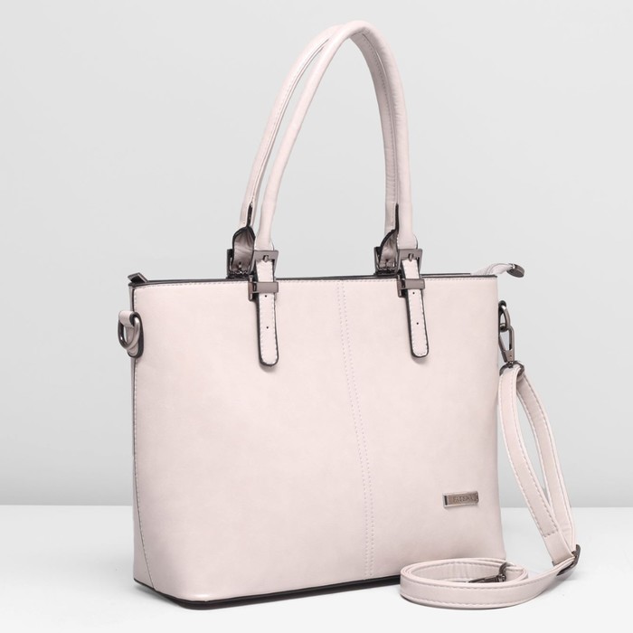 Сумка женская, 1 отдел с перегородкой, наружный карман, длинный ремень, цвет светло-бежевый