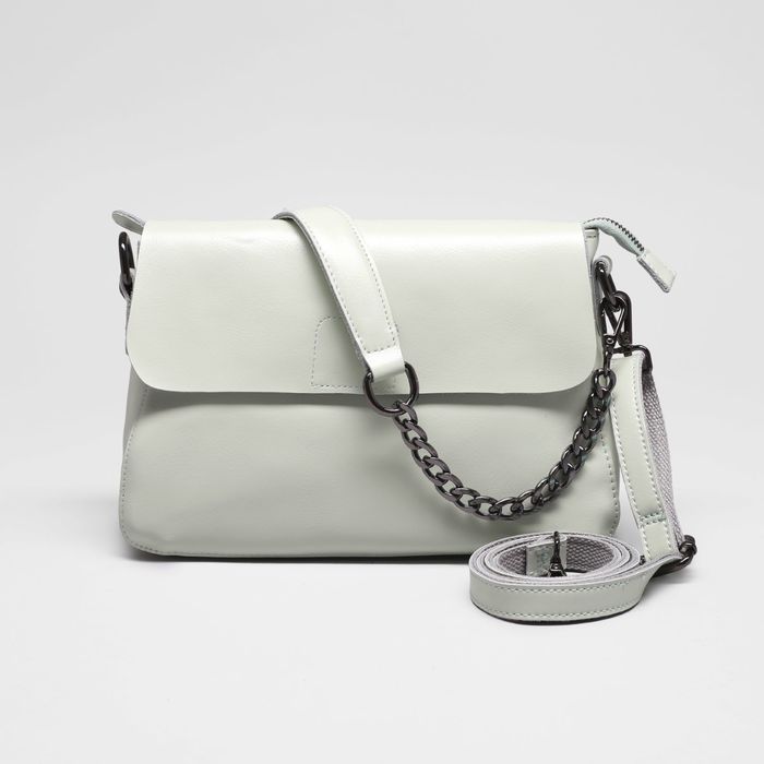 Сумка женская, 1 отдел с перегородкой, наружный карман, длинный ремень, цвет светло-мятный