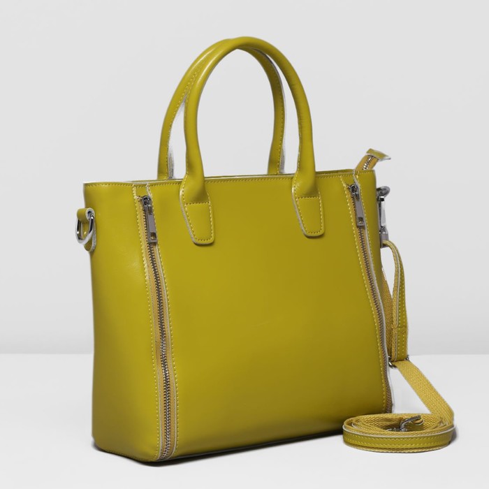 Сумка женская, 1 отдел с перегородкой, наружный карман, длинный ремень, цвет жёлто-зелёный