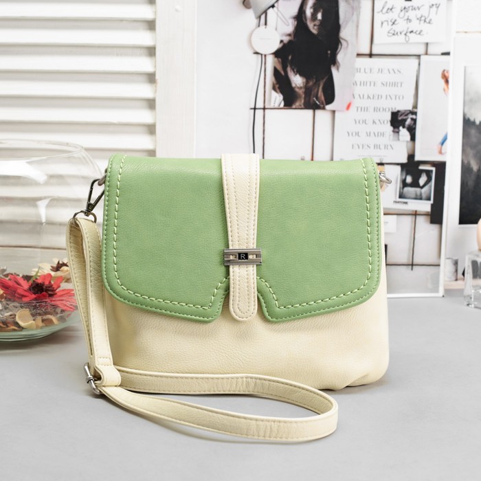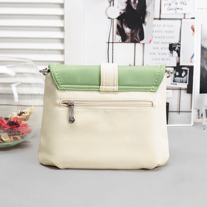 Сумка женская, 1 отдел с перегородкой, наружный карман, регулируемый ремень, цвет молочный/зелёный