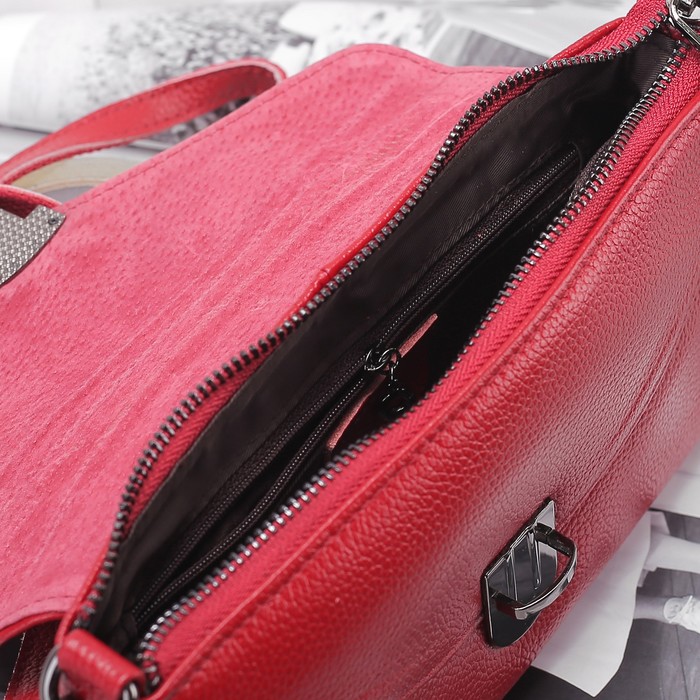 Сумка женская, 1 отдел с перегородкой, наружный карман, ручка, длинный ремень, цвет красный
