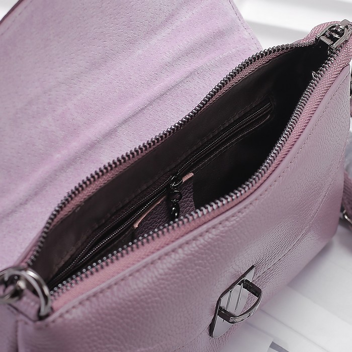 Сумка женская, 1 отдел с перегородкой, наружный карман, ручка, длинный ремень, цвет светло-фиолетовый