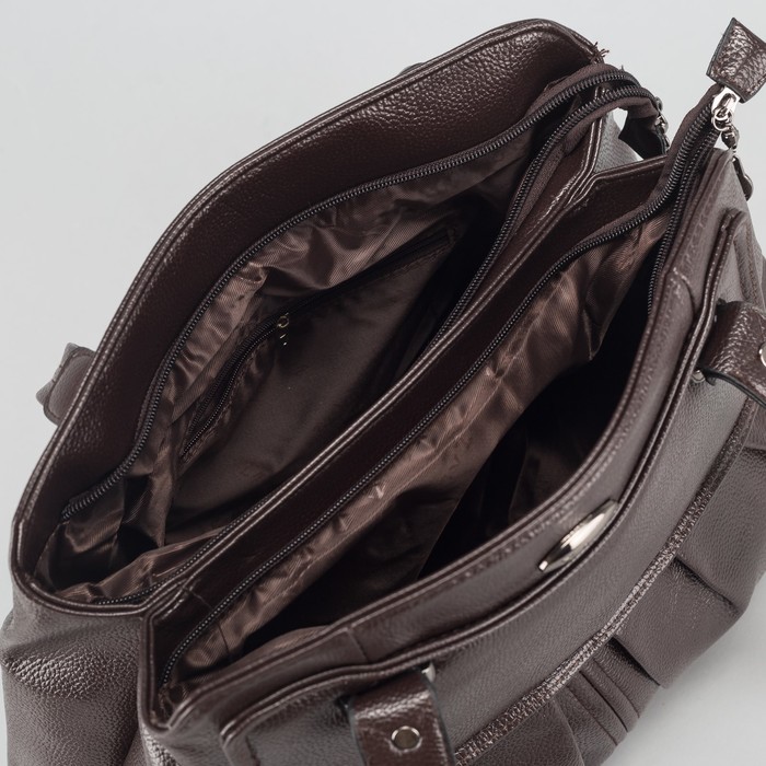 Сумка женская, 2 отдел на молниях, наружный карман, цвет кофе