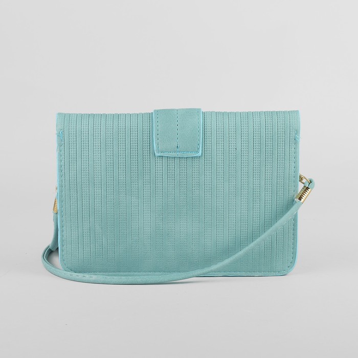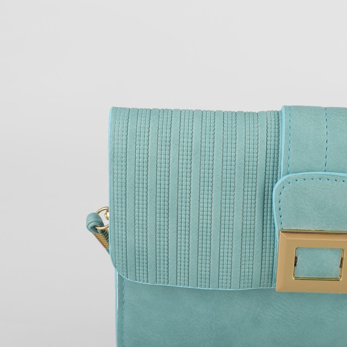 Сумка женская, 2 отдела на клапане, длинный ремень, цвет мятный