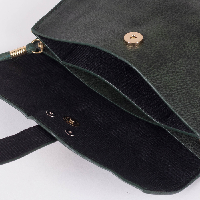 Сумка женская, 2 отдела на магните, длинный ремень, цвет зелёный