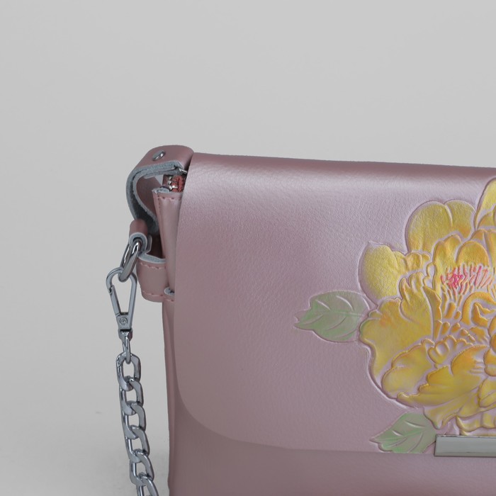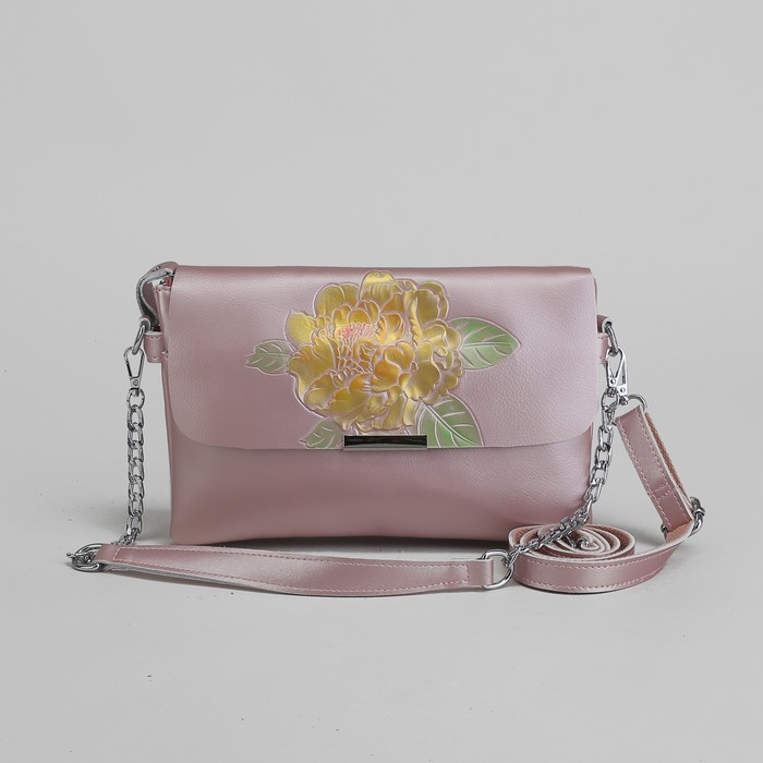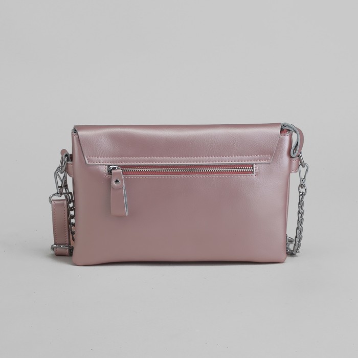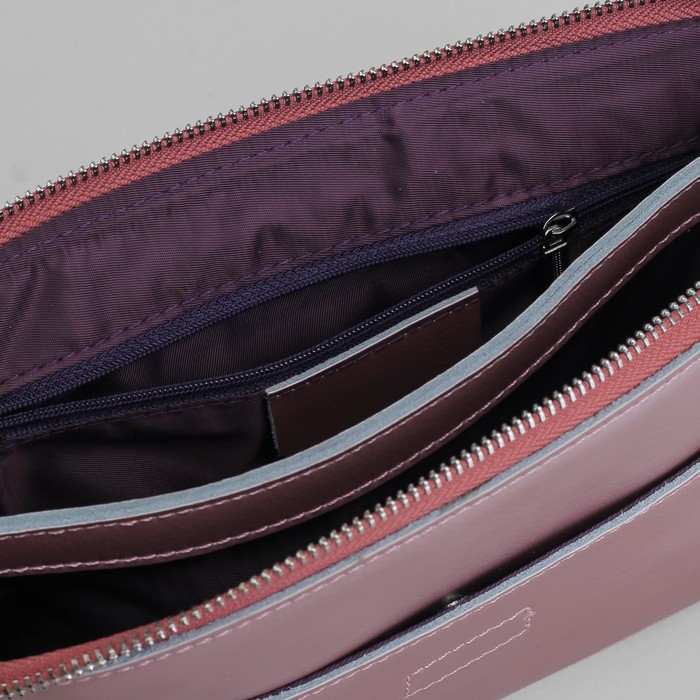 Сумка женская, 2 отдела на молнии, 2 наружных кармана, длинный ремень, цвет розовый перламутр