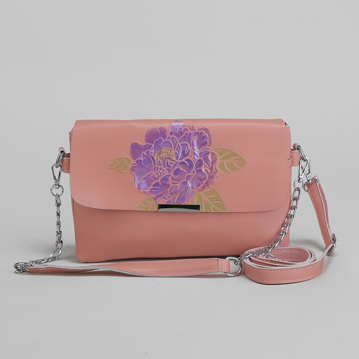 Сумка женская, 2 отдела на молнии, 2 наружных кармана, длинный ремень, цвет розовый