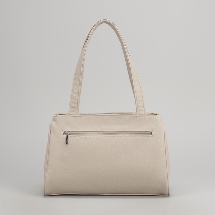 Сумка женская, 2 отдела на молнии, 4 наружных кармана, цвет бежевый/розовый