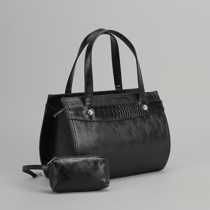 Сумка женская, 2 отдела на молнии, наружный карман, цвет чёрный