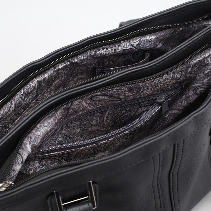 Сумка женская, 2 отдела на молнии, наружный карман, цвет чёрный