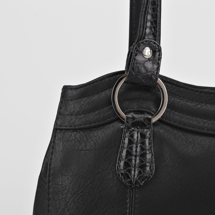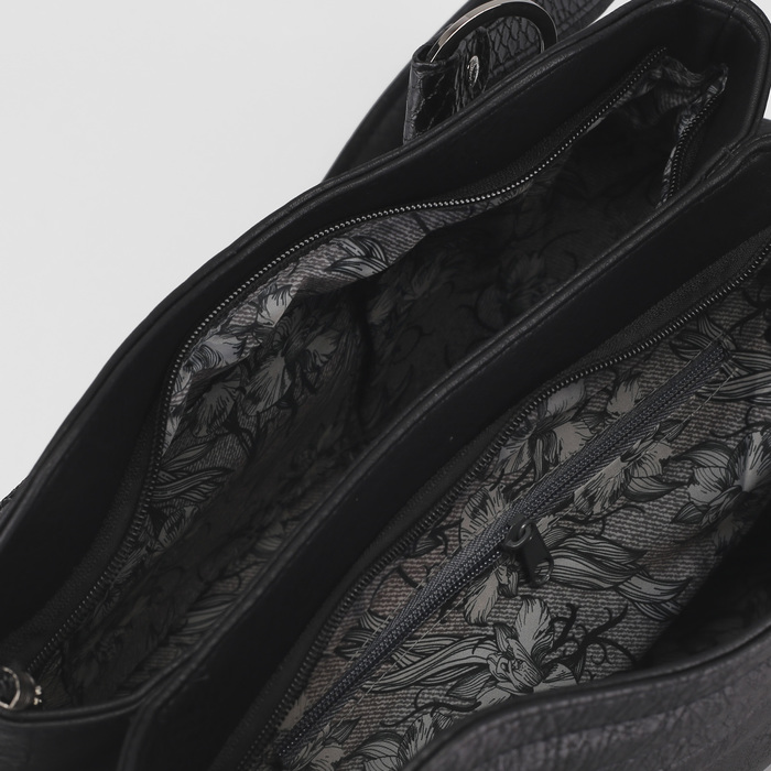 Сумка женская, 2 отдела на молнии, наружный карман, цвет чёрный