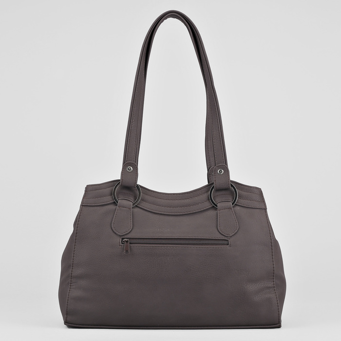 Сумка женская, 2 отдела на молнии, наружный карман, цвет тёмно-серый