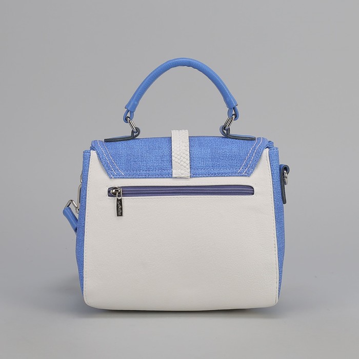 Сумка женская, 2 отдела на молнии, наружный карман, длинный ремень, цвет белый/синий