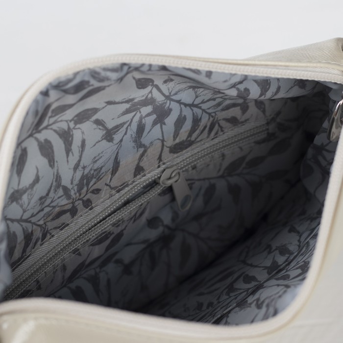 Сумка женская, 2 отдела на молнии, наружный карман, длинный ремень, цвет бежевый