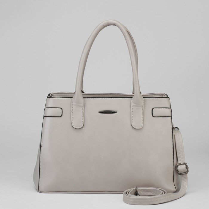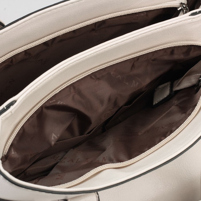 Сумка женская, 2 отдела на молнии, наружный карман, длинный ремень, цвет молочный